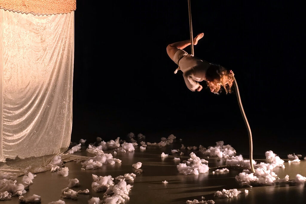 Mermaids ist ein Stück, das aus dem Wunsch heraus entstanden ist, eine weibliche Identität auf die Bühne zu tragen, die durch Zärtlichkeit, die Farbe Pink, alte Spielzeuge und den Übergang vom Kindes- ins Erwachsenenalter gekennzeichnet ist – da wo die Zerbrechlichkeit mit der Schönheit und dem weiblichen Körper in Beziehung tritt. Zwischen Akrobatik und Objekttheater spielt alles in einer surrealen Welt, in der Körper und Zirkussprache als Ausdrucksmittel verschmelzen.